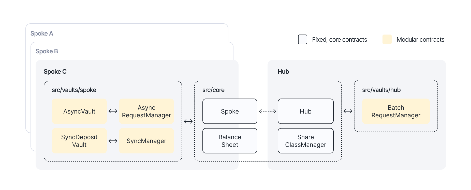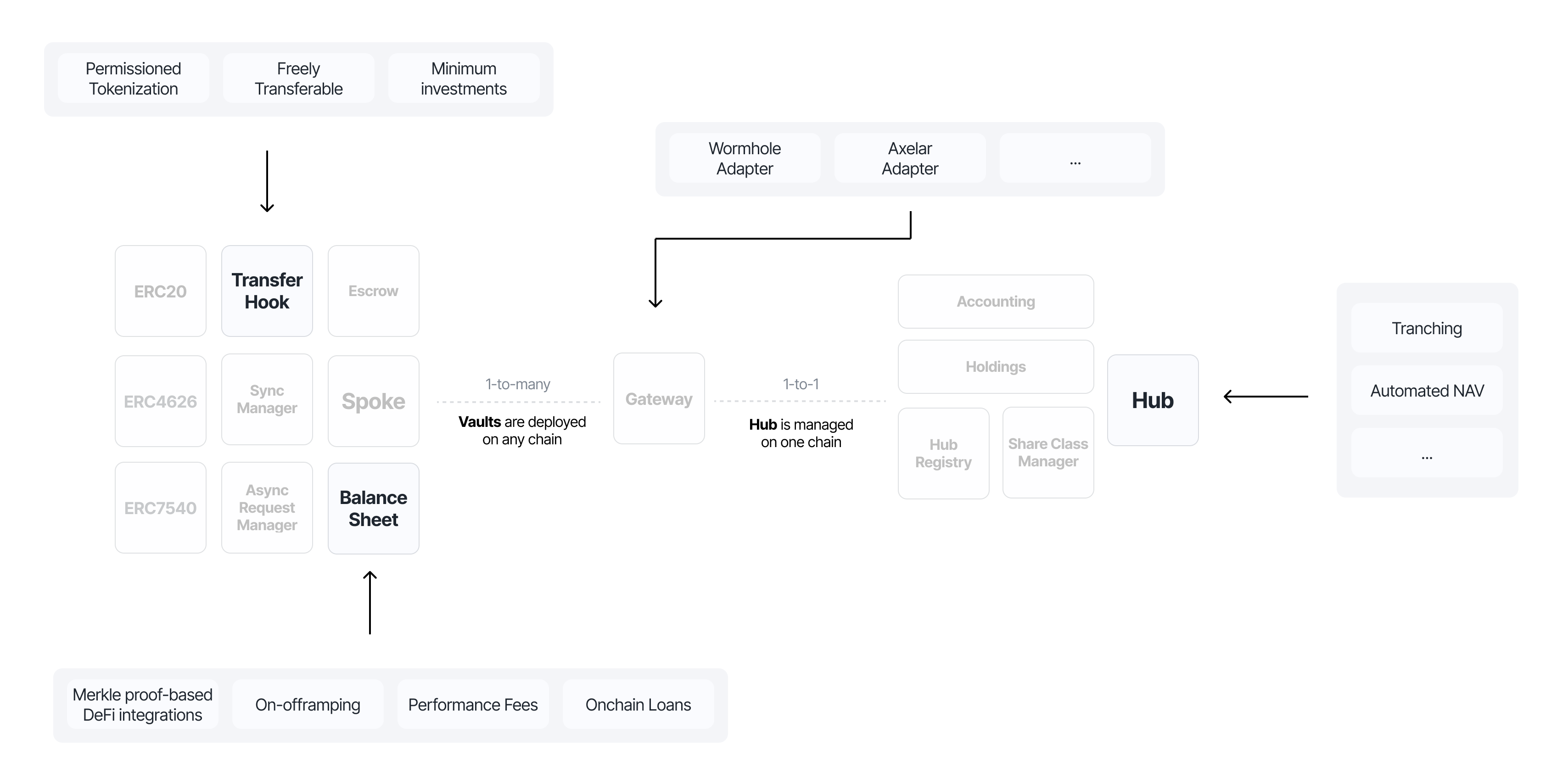 A tokenized money market fund, a multi-strategy DeFi allocator, and a cross-chain distribution vehicle all need different rules around who can hold the token, how deposits and redemptions work, what fees apply, and how pricing is calculated. But they all share the same underlying mechanics: accounting, settlement, cross-chain messaging, and access controls.